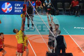 Варна (1 септември 2023) В зала "Конгресна" на Двореца на културата и спорта във Варна се играе срещата от група В на Европейското първенство по волейбол между отборите на Хърватия и Испания.