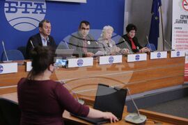София (25 март 2022) В Националния пресклуб на БТА - София се провежда пресконференция на Коалиция за живот без тютюнев дим на тема: Представяне на доклада „Токсична зависимост“. Как тютюневи компании изкривяват в своя полза политиките на държавата. На снимката: (от ляво надясно) Д-р Михаил Околийски, Павел Антонов, Д-р Гергана Гешанова и Д-р Маша Гавраилова