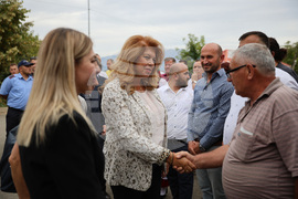 Село Големо Острени (14 септември 2023) В албанското село Големо Острени вицепрезидентът Илияна Йотова се срещта с представители на българското национално малцинство от района на Голо бърдо.