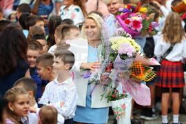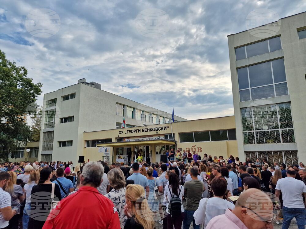 Бургас (15 септември 2023) Ученици, учители и родители посрещат първия учебен ден в двора на Основно училище "Георги Бенковски" Бургас.