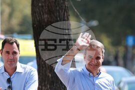Солун (16 септември 2023) Министър-председателят на България ще бъде на еднодневно работно посещение в Солун, където ще посети българската палата на 87-ия Солунски международен панаир, на който тази година България е почетна страна. На снимката: гръцкият министър-председател Кириакос Мицотакис (дясно) пристигна в Солун за традиционната си програмна реч, тази вечер на Солунския международен панаир.