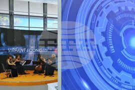 Солун (16 септември 2023) Министър-председателят на България ще бъде на еднодневно работно посещение в Солун, където ще посети българската палата на 87-ия Солунски международен панаир, на който тази година България е почетна страна. На снимката: През деня в българската палата струнен квартет „Фрош“ свири за посетителите на изложението.