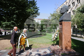 София (23 септември 2023) Обединени земеделци поднасят венци и цветя по повод 76 години от убийството на Никола Петков на паметника му в градинката пред храм „Св. Седмочисленици“.
