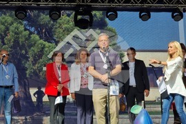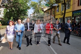 Троян (23 септември 2023) Тридесетото юбилейно издание на Българския фестивал на сливата привлича гости от цялата страна. Празникът започна с дефиле в центъра на града. В него се включиха вицепрезидентът Илияна Йотова (ляво), министърът на околната среда и водите Юлиян Попов (дясно), както и Представителният общински младежки духов оркестър, читалищни състави, гостуващи изпълнители, местни производители, занаятчии, граждани и гости на града. На снимката: кметът на Троян Донка Михайлова (в средата).