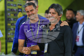 София (23 септември 2023) На стадион “Георги Аспарухов” футболните отбори на ПФК Левски (София) и ФК Етър (Велико Търново) играят мач от десетия кръг нa efbet Лига. На снимката: треньорът на Етър (Велико Търново) Емануел Луканов (ляво), треньорът на Левски (София) Николай Костов (дясно).