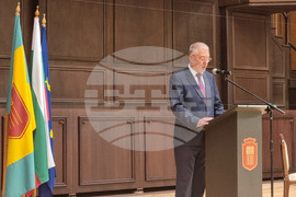 Добрич (25 септември 2023) По повод Деня на Добрич на тържествено заседание на Общински съвет в концертна зала „Добрич“ бяха връчени почетните звания на художника Тодор Балев и оперната прима Константина Петкова. На снимката: председателят на Общински съвет – Добрич, Нивелин Радичков.