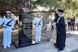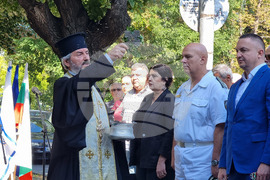 Варна (25 септември 2023) С военен ритуал днес във Варна бе открит паметник на генерал Иван Колев. Паметникът бе осветен от отец Цветан Флоров (на снимката) от Варненската и Великопреславска митрополия, а след това бяха поднесени венци и цветя. Монументът откриха кметът на Варна Иван Портних и Артак Казарян - председател на сдружение "Български родолюбци", чиято е идеята за изграждането му.