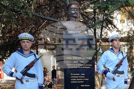 Варна (25 септември 2023) С военен ритуал днес във Варна бе открит паметник на генерал Иван Колев. Паметникът бе осветен от отец Цветан Флоров от Варненската и Великопреславска митрополия, а след това бяха поднесени венци и цветя. Монументът откриха кметът на Варна Иван Портних и Артак Казарян - председател на сдружение "Български родолюбци", чиято е идеята за изграждането му. На снимката: съветникът на президента Румен Радев по сигурност и отбрана Илия Милушев.