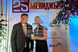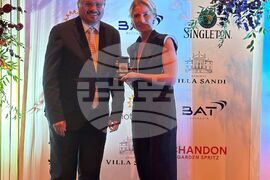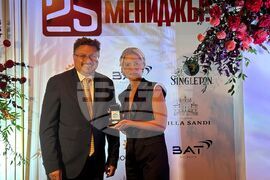София (25 септември 2023) Списанието „Мениджър“ тази вечер отбелязва своята 25-а годишнина. На снимката: Издателят на списание „Мениджър“ Александра Мирчева получава медала за 125 години БТА от генералния директор на БТА Кирил Вълчев.