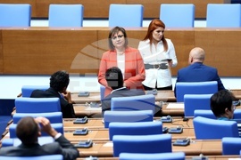 София (27 септември 2023) В сградата на парламента се провежда заседание на Народното събрание. На снимката (от ляво надясно): председателят на БСП Корнелия Нинова, Венеция Нецова-Ангова.