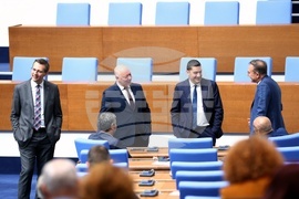 София (27 септември 2023) В сградата на парламента се провежда заседание на Народното събрание. На снимката (от ляво надясно): Станислав Анастасов, председателят на Народното събрание Росен Желязков, Владимир Гаджев, Христо Гаджев.