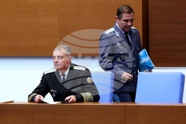 София (27 септември 2023) В сградата на парламента се провежда заседание на Народното събрание. На снимката (от ляво надясно): началникът на отбраната адмирал Емил Ефтимов, заместник-командирът на Военновъздушните сили бригаден генерал Петьо Мирчев.