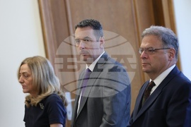 София (27 септември 2023) В сградата на Министерски съвет се провежда редовно заседание на правителството. На снимката (от ляво надясно): министърът на отбраната Тодор Тагарев, министърът на труда и социалната политика Иванка Шалапатова, министърът на вътрешните работи Калин Стоянов.