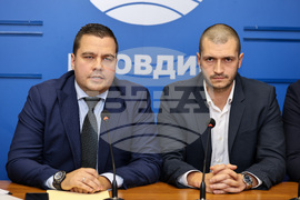 Пловдив (28 септември 2023) В Националния пресклуб на БТА - Пловдив, ПП "Има такъв народ" представят кандидатите за кмет на Пловдив - Станислав Балабанов (ляво), за районни кметове в града и за общински съветници, както и приоритетите си.