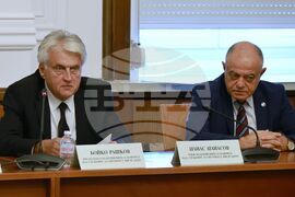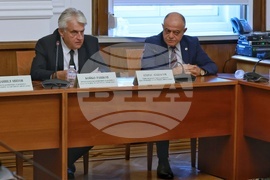 София (28 септември 2023) В Народното събрание заседание провежда Комисията за контрол над службите за сигурност, прилагането и използването на специалните разузнавателни средства и достъпа до данните по Закона за електронните съобщения. На снимката: председателят на комисията Бойко Рашков и депутатът от ПП-ДБ Атанас Атанасов (дясно).