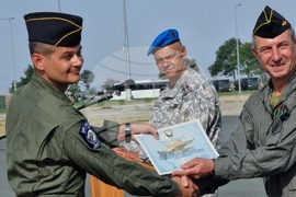 Авиобаза "Безмер" (5 октомври 2023) Авиобаза „Безмер“ край Ямбол отбеляза днес 72 години от създаването си с тържествен военен ритуал, водосвет и връчване на отличия на военнослужещи и цивилни служители. Почетният строй прие командирът на Военновъздушните сили (ВВС) генерал-майор Димитър Петров. По случай празника над базата прелетяха вертолет „Кугар“ щурмови смолети Су-25, които демонстрираха различни видове пилотаж и маньоври при атаки по въздушна цел. На снимката: командирът на авиобаза полк. Милен Димитров.
