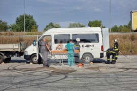 Видин (5 октомври 2023) Във Видин се проведе практическо занятие за реагиране при възникнала катастрофа с пострадали. По време на учението беше разиграна ситуация на възникнала катастрофа между товарен автомобил и пътнически бус, превозваш работници. Задачата на всички екипи беше да се отиграят и тренират действията, необходими от всяка една институция по време на такова произшествие.