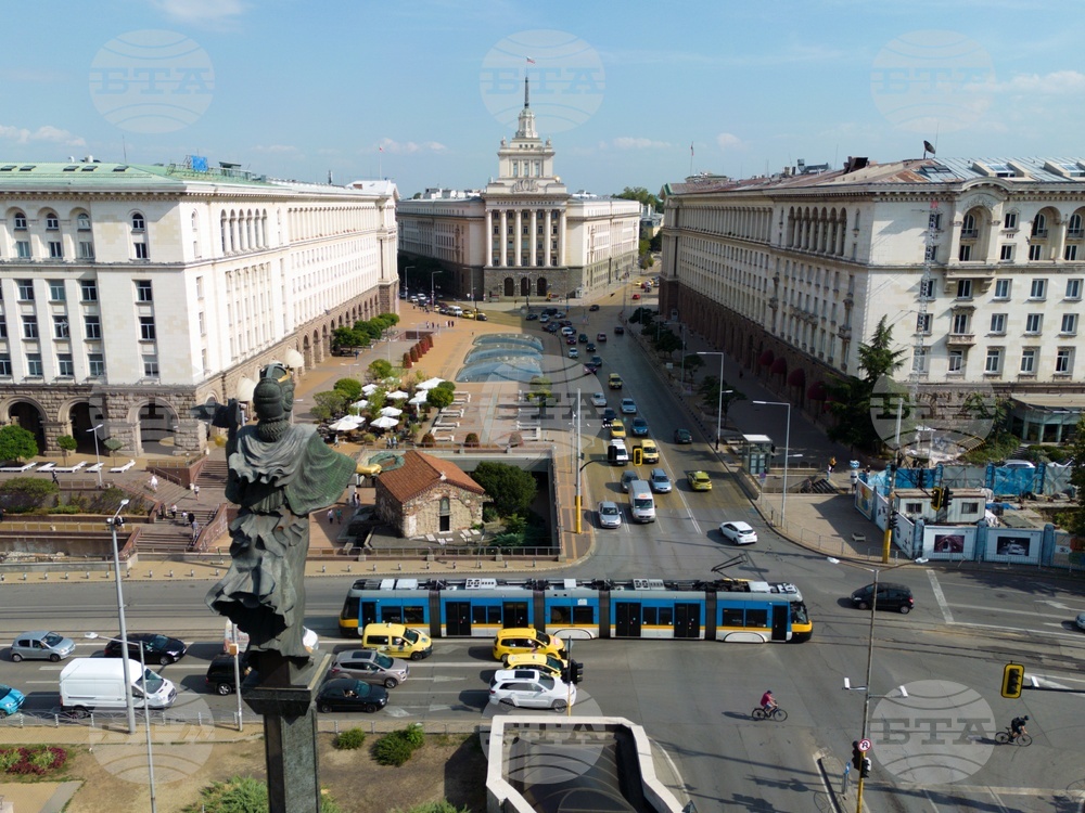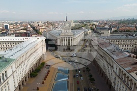 София (5 октомври 2023) Изглед с дрон над столичното ларго, при сградите на Президентството, Народното събрание и Министерски съвет.