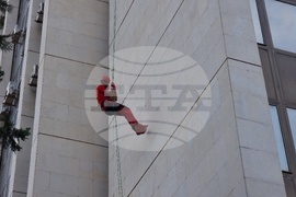 Ловеч (5 октомври 2023) Алпийска демонстрация по спасяване на хора от висока сграда бе направена от планинските спасители в Ловеч.