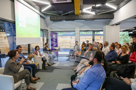 София (5 октомври 2023) Дискусия за културното развитие на София „Култура и град“ се провежда в event space MISSIA 23. Участват кандидатът за кмет на София Васил Терзиев, водачът на листата за общински съветници Борис Бонев, експерти, работещи в сектора и граждани. Снимка: Цветомир Петров/БТА (ЕД)