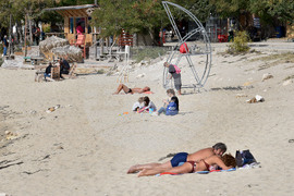 Варна (10 октомври 2023) Варненци и гости на града се радват на топлите и спокойни октомврийски дни по брега на морето.