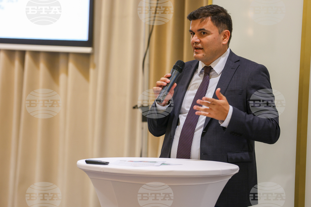 София (10 октомври 2023) Изследването „Икономически центрове в България - 2023" на Института за пазарна икономика (ИПИ), което проучва концентрацията на икономическа активност в страната, се представя в хотел „Интерконтинентал София". На снимката: мениджър „Развитие проекти" към „Тракия икономическа зона" Владислав Кънчев.