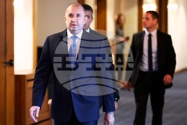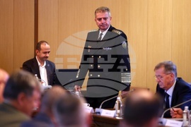 София (6 ноември 2023) Държавният глава и Върховен главнокомандващ на Въоръжените сили Румен Радев открива кръгла маса на тема „Прилагане на достъпни технологии и продукти с голям асиметричен ефект в съвременните конфликти“ в Дом 2 на Резиденция „Бояна“. На снимката: секретарят по сигурност и отбрана на държавния глава Димитър Стоянов.