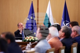 София (6 ноември 2023) Държавният глава и Върховен главнокомандващ на Въоръжените сили Румен Радев открива кръгла маса на тема „Прилагане на достъпни технологии и продукти с голям асиметричен ефект в съвременните конфликти“ в Дом 2 на Резиденция „Бояна“.