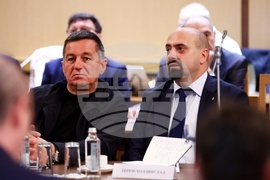 София (6 ноември 2023) Държавният глава и Върховен главнокомандващ на Въоръжените сили Румен Радев открива кръгла маса на тема „Прилагане на достъпни технологии и продукти с голям асиметричен ефект в съвременните конфликти“ в Дом 2 на Резиденция „Бояна“. На снимката: заместник-министърът на отбраната Станимир Георгиев (вляво) и председателят на Комисията по отбрана към парламента Христо Гаджев.
