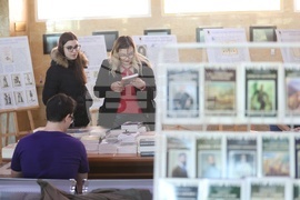 София (6 ноември 2023) В централното фоайе на Университета за национално и световно стопанство (УНСС) се провежда четвъртото издание на Университетска седмица на книгата в партньорство с Асоциация “Българска книга". По време на събитието в УНСС гостува и изложбата “В света на пътешествията" на Националната библиотека “Св. св. Кирил и Методий", която чества 145 години. На снимката : завеждащият направление „Опазване на ръкописно-документалното наследство“ в Националната библиотека „Св.Св.Кирил и Методий“ д-р Бояна Минчева.