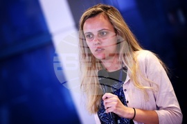 София (7 ноември 2023) Българската телеграфна агенция (БТА) в партньорство с Европейския парламент (ЕП) организира второто за тази година обучение за млади журналисти от националните и регионалните медии в България. Обучението е по теми на европейските институции с фокус върху ЕП и се провежда на 6-и, 7-и и 8 ноември. Семинар 2: Комуникиране на европейските въпроси. На снимката: координаторът социални мрежи в БТА Ива Тончева.