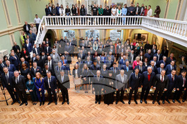 Пловдив (8 ноември 2023) Новите кмет, районни кметове и общински съветници в Пловдив положиха клетва. На първото заседание на Общинския съвет, което се проведе в зала "Съединение" на Регионалния исторически музей, с 32 гласа съветниците избраха Атанас Узунов за председател. На снимката: председателят на Общинския съвет Атанас Узунов.