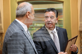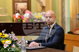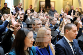 Пловдив (8 ноември 2023) Новите кмет, районни кметове и общински съветници в Пловдив положиха клетва. На първото заседание на Общинския съвет, което се проведе в зала "Съединение" на Регионалния исторически музей, с 32 гласа съветниците избраха Атанас Узунов за председател. На снимката: новият кмет на Пловдив Костадин Димитров (вдясно).