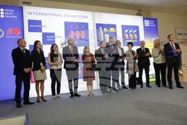 София (8 ноември 2023) Министърът на земеделието и храните Кирил Вътев открива международните хранителни изложения "Месомания", "Пътят на млякото", "Булпек", "Интерфуд&Дринк" и "Wine&Spirits Show", които започват днес и ще продължат до 11 ноември в столичния Интер Експо Център. Към петте паралелни изложения за първи път се присъединява и форматът за сектор "Пчеларство" - "Bee Rise". В събитието вземат участие над 460 български и чуждестранни фирми от целия хранително-вкусов сектор. На снимката: заместник-министърът на икономиката и индустрията Ирина Щонова (ляво).