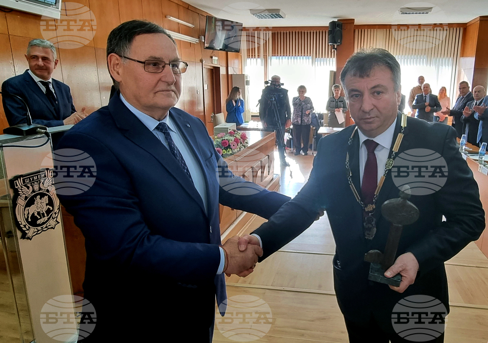 Шумен (10 ноември 2023) Новоизбраният кмет на Шумен Христо Христов, общински съветници и кметовете на кметства полагат клетва на тържествена сесия на Общинския съвет в областния град.