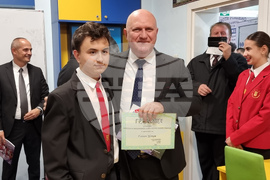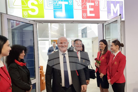 Кърджали (10 ноември 2023) Министърът на образованието Галин Цоков (в средата) е на посещение в кърджалийското училище "П.Р.Славейков", придружаван от съветника на кабинета си Наталия Михалевска. Визитата на министъра е по покана на директора на учебното заведение Милко Багдасаров, а с посещението се дава началото на Славейковите дни, посветени на патронния празник на школото.