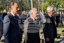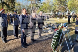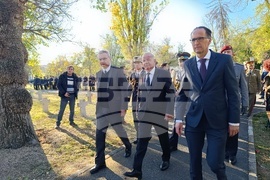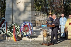 Букурещ (13 ноември 2023) Паметта на загиналите в Първата световна война български, немски, френски и румънски войници беше почетена с официална церемония в Букурещ. Посланиците на България, на Германия и на Франция заедно поднесоха венци пред паметниците на загиналите военни на гробища "Про Патрия" и "Белу". На снимката: посланикът на България Радко Влайков (в средата).