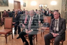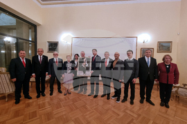 Анкара (14 ноември 2023) Журналистката Нахиде Дениз представи документалния си филм за Ататюрк "Софийските години на Мустафа Кемал, 1913 - 1915" в посолството на България в Анкара. Проявата е организирана по идея на Фондацията на балканските изселници за стопанско проучване и социално подпомагане (БИСАВ). Излъчването на филма е в рамките на честванията на 100-годишнината на Република Турция (на 29 октомври бе отбелязана 100-годишнината на републиката, обявена от Мустафа Кемал Ататюрк). На снимката: Нахиде Дениз (втора от ляво надясно), председателят на дружеството БИСАВ д-р Юксел Йозкале (трети от ляво надясно) и посланикът на България в Турция Ангел Чолаков (втори от дясно наляво).