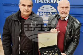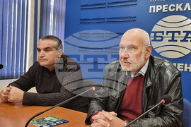 Шумен (15 ноември 2023) Проф. Николай Овчаров (дясно) и Стефан Иванов представиха нови археологически находки от Средновековния Мисионис край Търговище на пресконференция в Националния пресклуб на БТА в Шумен.
