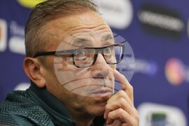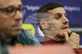 София (15 ноември 2023) Преди европейската квалификация по футбол срещу Унгария, селекционерът на Националния отбор на България Илиан Илиев даде пресконференция, която се проведе в Национална футболна база „Бояна“. На пресконференцията присъства и капитанът на отбора Кирил Десподов (на снимката).
