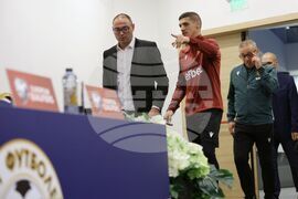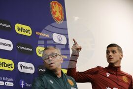 София (15 ноември 2023) Преди европейската квалификация по футбол срещу Унгария, селекционерът на Националния отбор на България Илиан Илиев даде пресконференция, която се проведе в Национална футболна база „Бояна“. На пресконференцията присъства и капитанът на отбора Кирил Десподов (дясно).