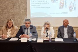 София (15 ноември 2023) Регионална годишна среща по Националната програма за подобряване на ваксинопрофилактиката. В срещата участват председателят на УС на Столичната колегия на БЛС д-р Ваньо Видков (втори отляво) и доц. д-р Лили Маринова (втора отдясно).
