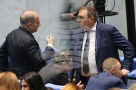 София (16 ноември 2023) В сградата на Народното събрание се провежда заседание на Парламента. На снимката: лидерът на БСП Корнелия Нинова и Георги Свиленски.