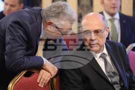 София (16 ноември 2023) В Централния военен клуб се провежда Форум за научни изследвания и иновации в отбраната (Defence Research and Innovation Forum - DRIF). Целта на форума е да се утвърди ролята на научните изследвания и иновации за нуждите на отбраната и да се начертаят ключовите приоритети за адекватно участие на България в инициативите на ЕС и НАТО в областта на иновациите. На снимката (от ляво надясно): началникът на щаба на ускорителя на НАТО за нови технологии Мориц Цимерман, директорът Институт по отбрана "Професор Цветан Лазаров" Борислав Генов.
