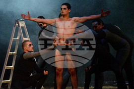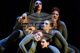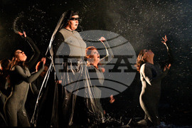 Варна (17 ноември 2023) Генерална репетиция на постановката „Свръхчовек“, партньорски проект между творци от РС Македония и ДТ „Стоян Бъчваров“ Варна. Режисьор е Васил Зафирчев, хореографията е на Олга Панго, а сценографията на Филип Коруновски.