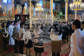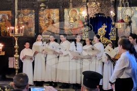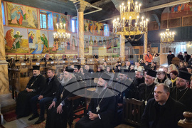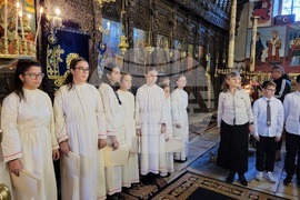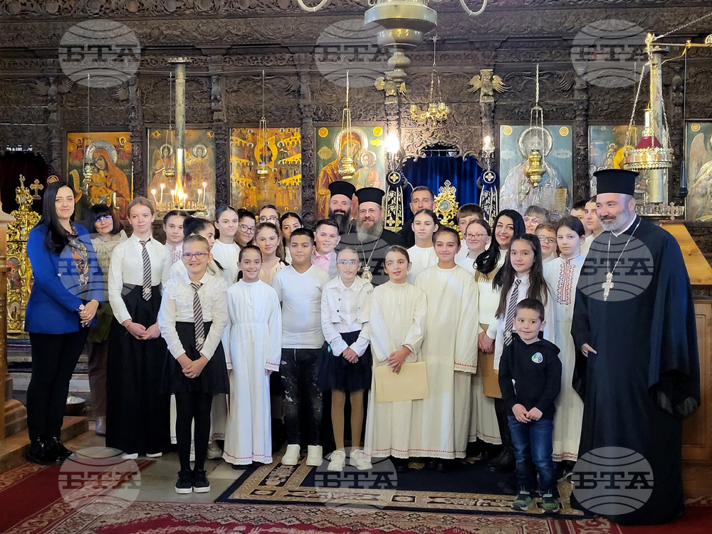 Самоков (19 ноември 2023) В Митрополитската църква "Успение Богородично" в Самоков се провежда тържество с учениците от Основно училище "Митрополит Авксентий Велешки" по случай Деня на християнското семейство - 21 ноември. Учениците изпълняват църковни песни и тематични стихове за празника. Събитието бе уважено от Негово Преосвещенство Белоградчишки епископ Поликарп (дясно), викарий на Софийския митрополит, представители на Софийската митрополия и местни духовници.