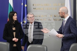 София (21 ноември 2023) В Министерски съвет се провежда заседание на Националния съвет за тристранно сътрудничество (НСТС). На снимката (от ляво надясно): заместник министър-председателят и министър на външните работи Мария Габриел, президентът на КНСБ Пламен Димитров и заместник-министърът на финансите Георги Клисурски.