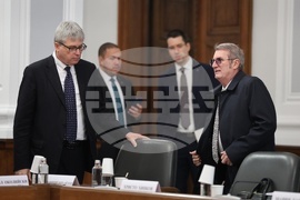 София (21 ноември 2023) В Министерски съвет се провежда заседание на Националния съвет за тристранно сътрудничество (НСТС). На снимката: заместник-министърът на здравеопазването Михаил Околийски и управителят на НЗОК Станимир Михайлов (дясно).