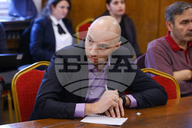 София (21 ноември 2023) Втора сесия на публичната дискусия „Резултатите от местните избори и как те ще повлияят на некоалиционното управление“ се провежда в сградата на СУ „Св. Климент Охридски“. Събитието се организира от аналитичен клуб „Екзаминър“. На снимката: Юрий Асланов.