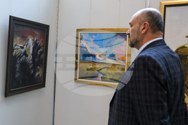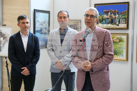 София (22 ноември 2023) В Мраморното фоайе на Народното събрание се открива изложбата „Босилеград в цветове”. Изложбата представя картини на професионални художници от България, Сърбия, Република Северна Македония, Черна гора и Украйна. Творбите са селектирани от трите издания на едноименния художествен пленер в Босилеград от 2021, 2022 и 2023 г. На снимката: председателят на сдружение „ГЛАС“ Александър Димитров (дясно).